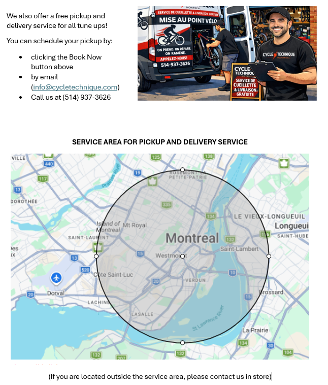 At Cycle Technique, we offer a fast and professional repair service for all types of bikes. Whether you need an overhaul, a chain change, or a more complex repair, our team of specialists will make sure your bike is as good as new in no time.